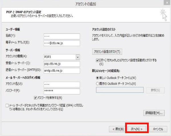 3 受信メールサーバー・・・mail.ctb.ne.jp